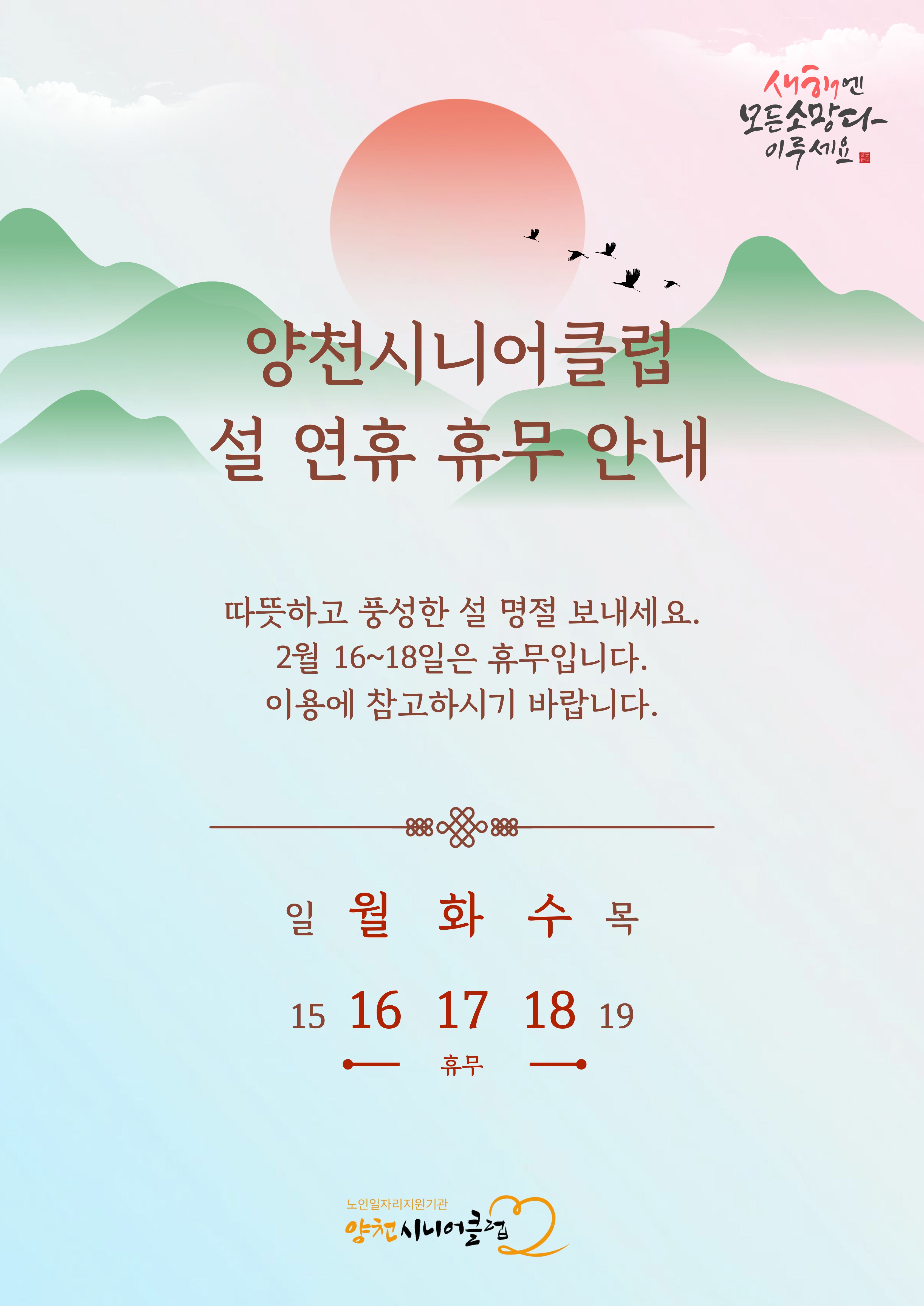 | <양천시니어클럽> 2월 휴관안내 | 2026.02.11 | |