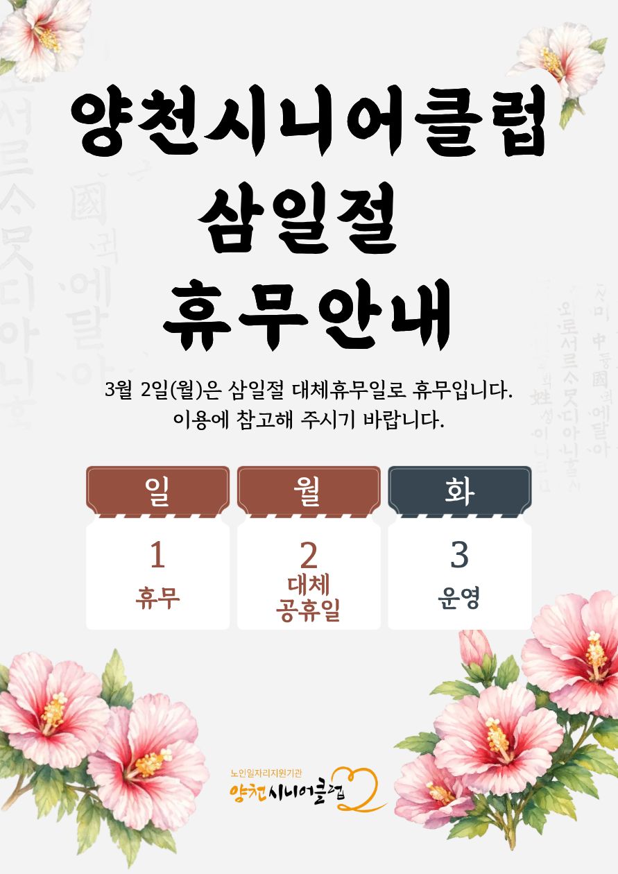 <양천시니어클럽> 3월 휴관안내