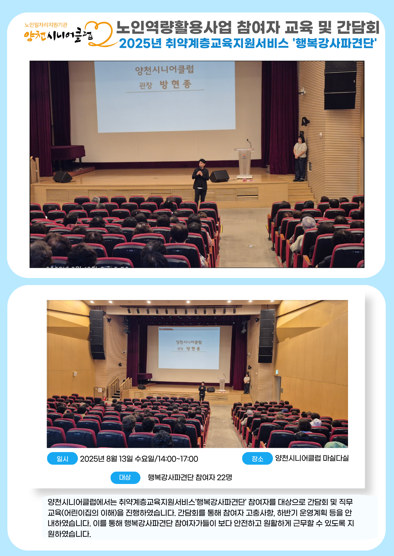 작성자 : 양천시니어클럽(yc_senior@naver.com) 작성일 : 2025-08-13 조회수 : 131