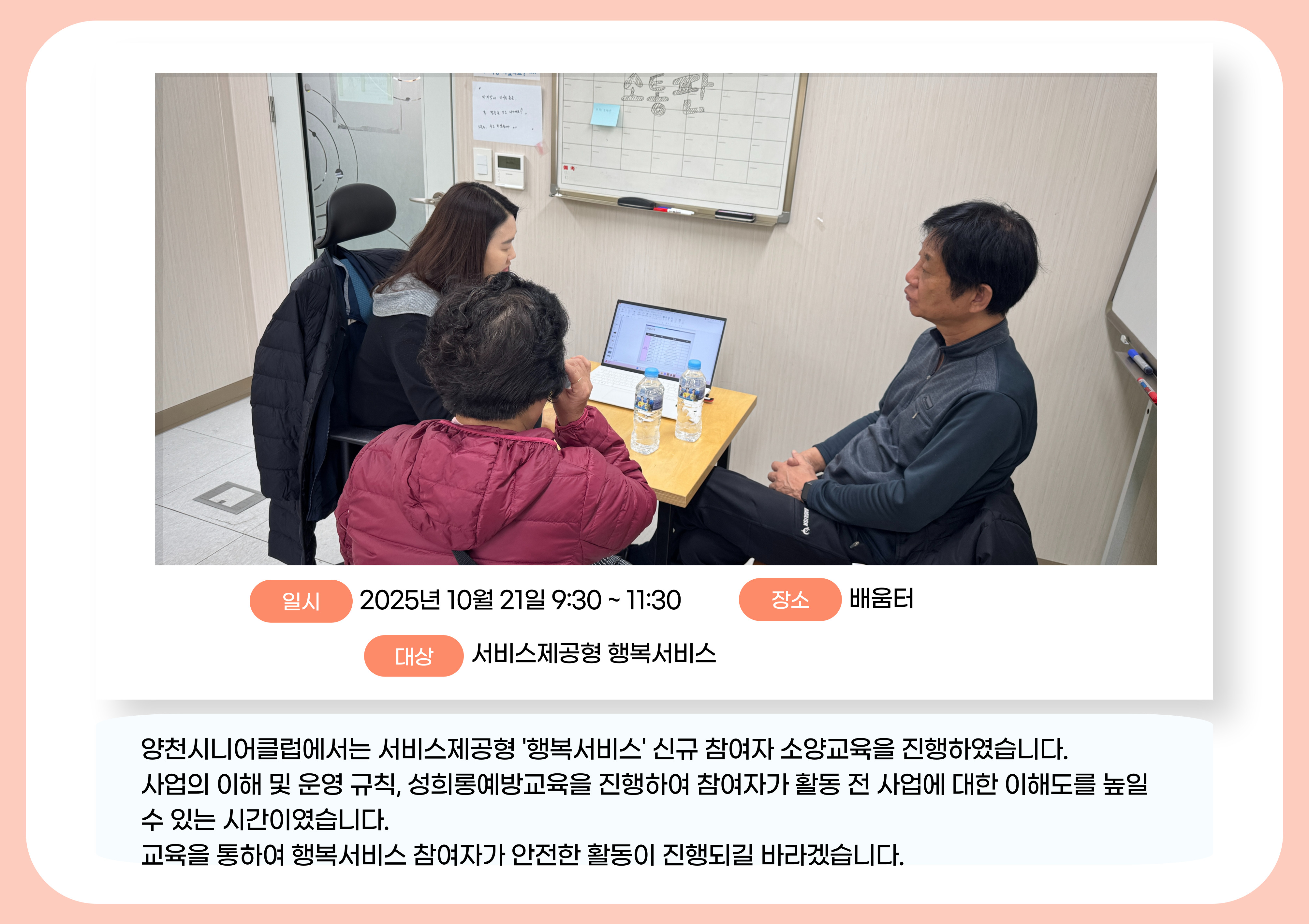 작성자 : 양천시니어클럽(yc_senior@naver.com) 작성일 : 2025-10-21 조회수 : 57