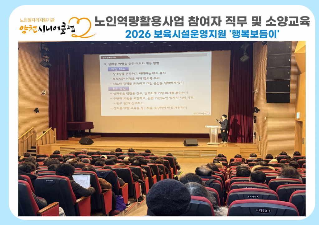 | [합격자 발표] 양천시니어클럽 노인일자리담당자... | 2026.02.11 |