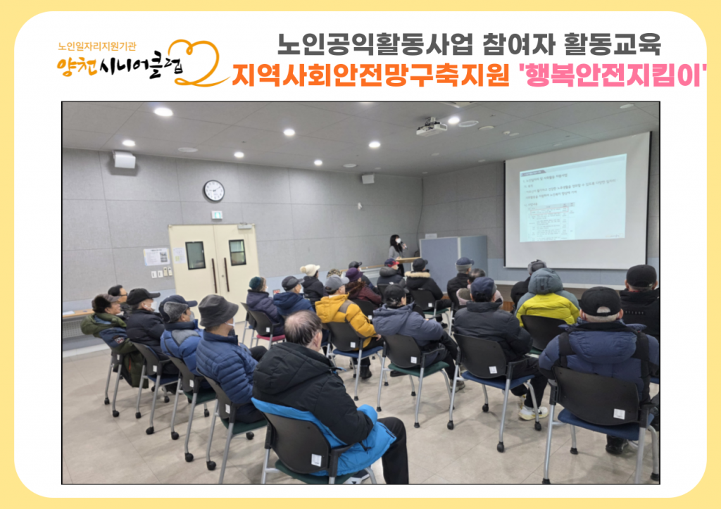 | [채용공고/재공고] 양천시니어클럽 직원(노인일... | 2026.02.12 | |