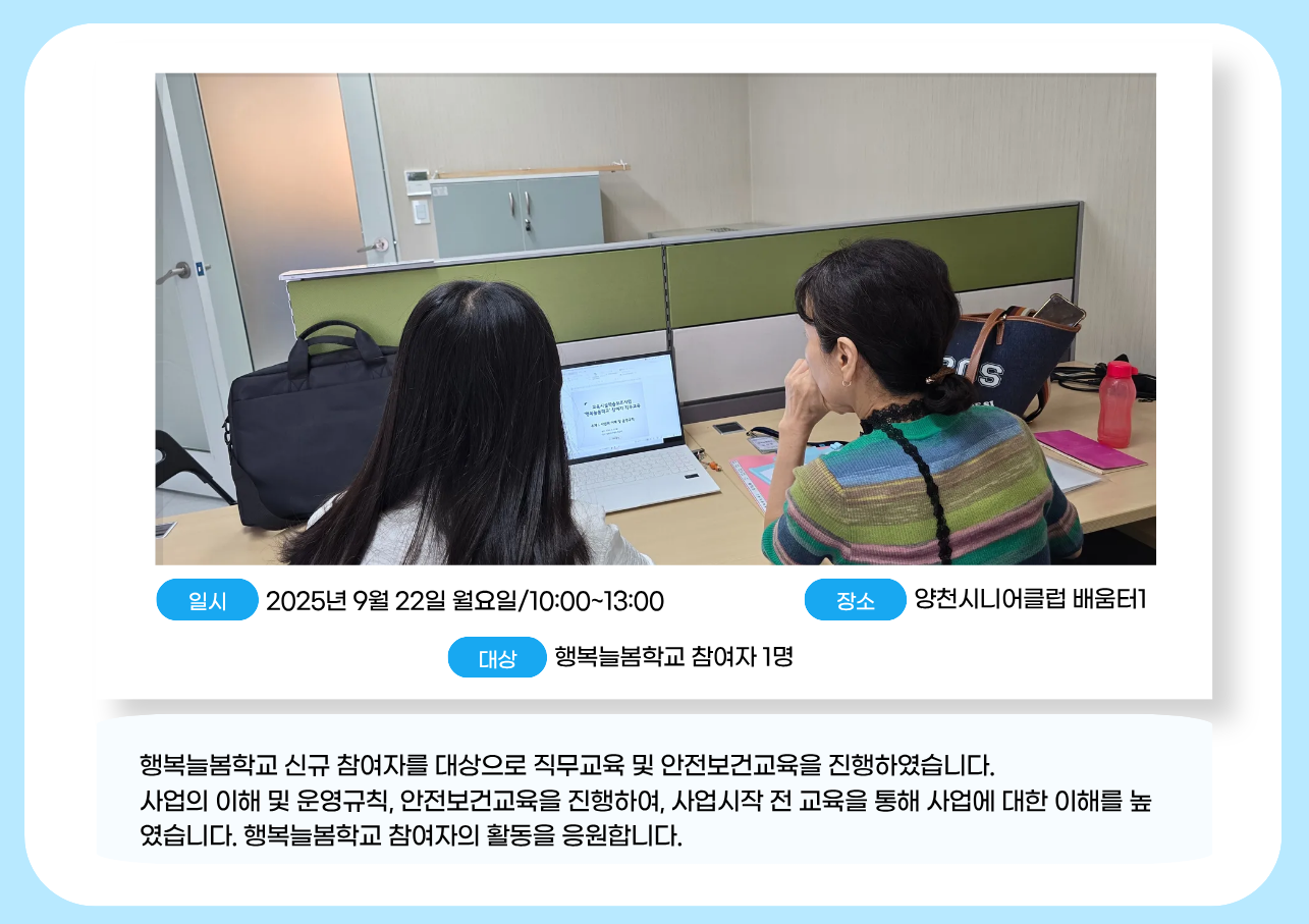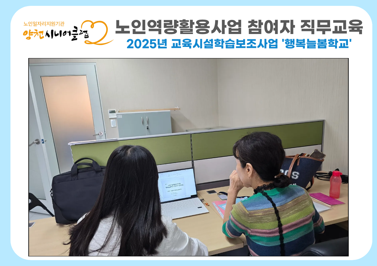 작성자 : 양천시니어클럽(yc_senior@naver.com) 작성일 : 2025-09-22 조회수 : 119
