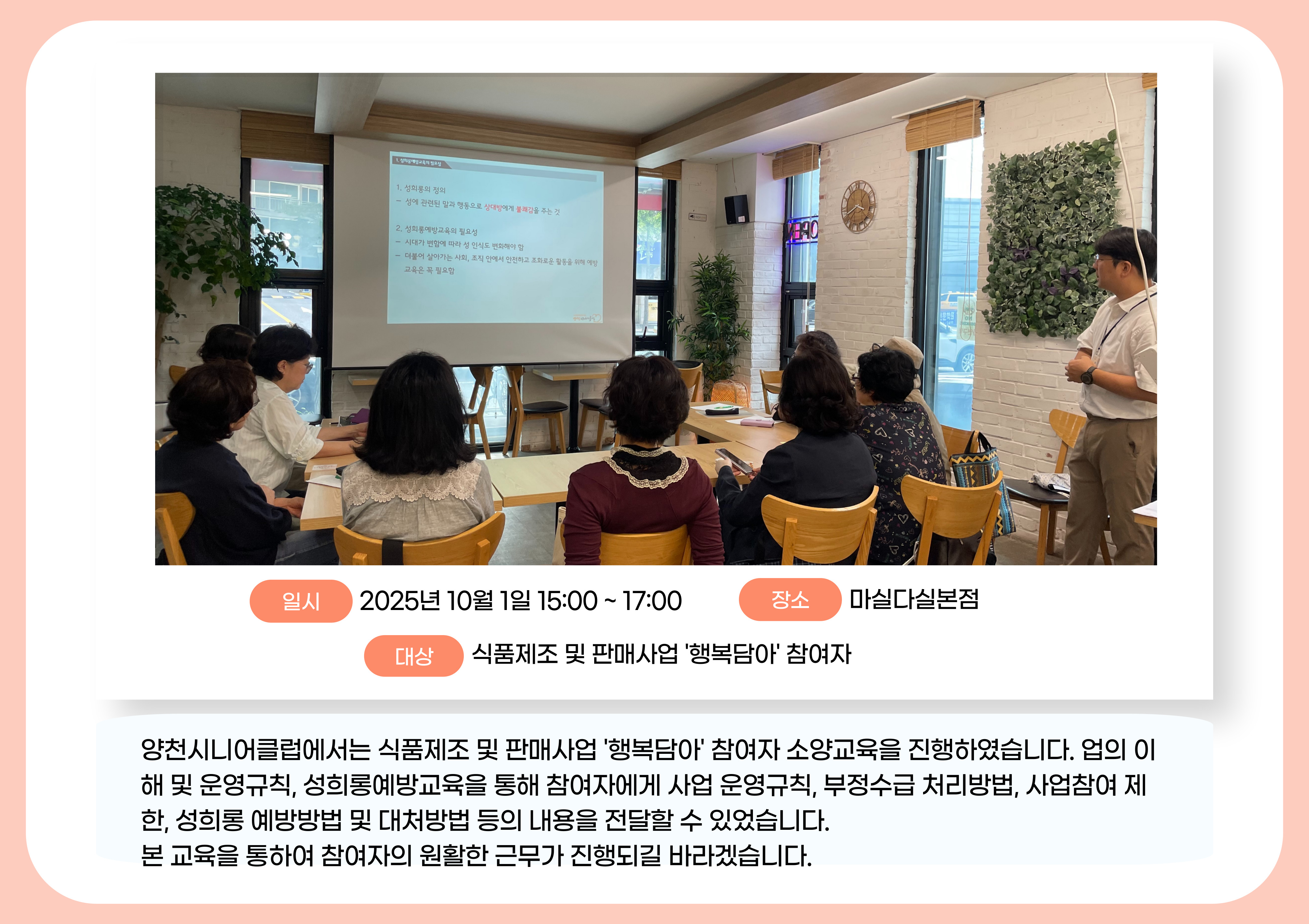 작성자 : 양천시니어클럽(yc_senior@naver.com) 작성일 : 2025-10-01 조회수 : 127