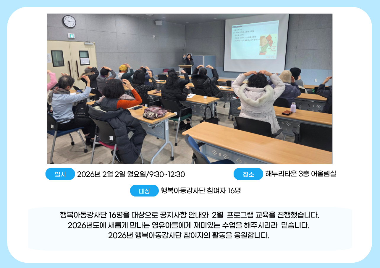다음글 [행복안심단속반]참여자 소양교육 및 직무교육